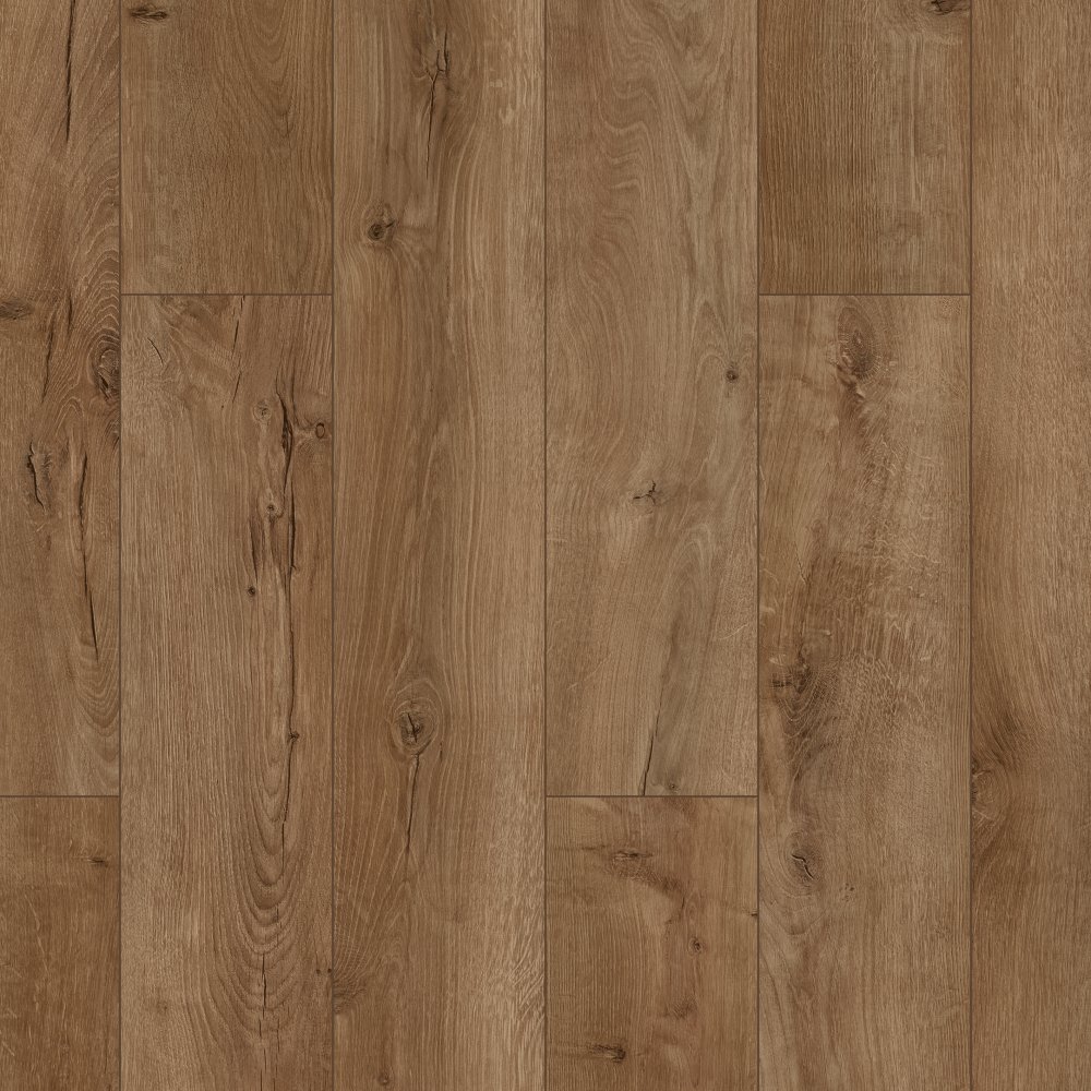 Повышенная влагостойкость позволяет использовать покрытие в кухнях и прихожих. Коричневый оттенок с однополосной имитацией древесины подходит для классических и современных интерьеров. Соответствует классу пожарной опасности КМ3.