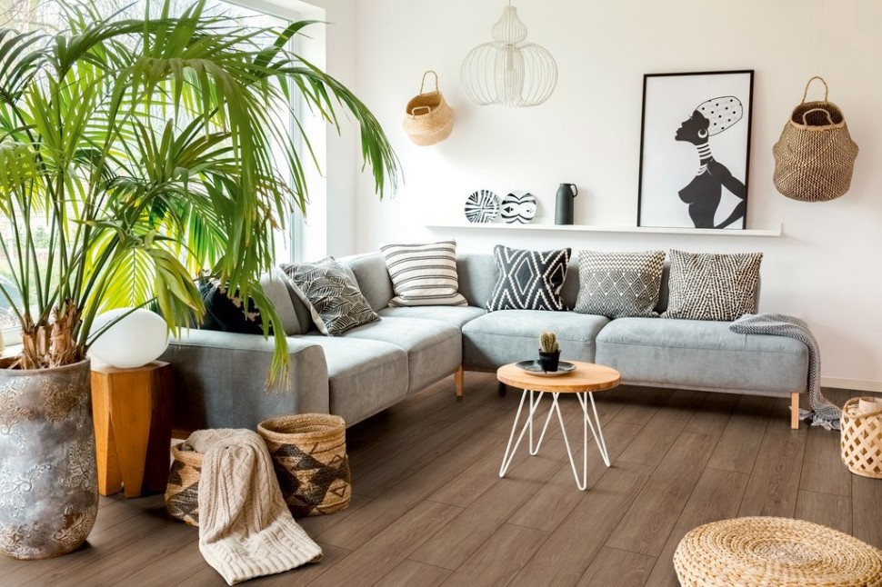 Ламинат Kronotex (Кронотекс) Дуб портовый — выбор для тех, кто ищет прочное напольное покрытие для квартиры или офиса. Класс износостойкости 33 и толщина 12 мм подходят для активной эксплуатации: в прихожей, гостиной или коммерческих помещениях. Темно-коричневый цвет и однополосный рисунок создают эффект массивной доски, а четырехсторонняя фаска формирует аккуратные стыки и придает полу рельеф.