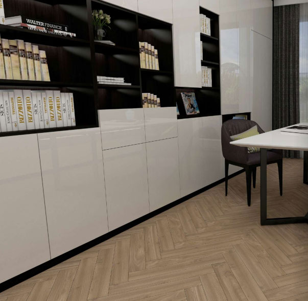 Дизайн Дуб Компаунд Woodstyle воплощает в себе эстетику натурального дерева, максимально точно имитируя текстуру дуба. Шаблон «Елочка» придает доскам неповторимый и изысканный вид, создавая в помещении атмосферу естественности и гармонии с окружающей средой.